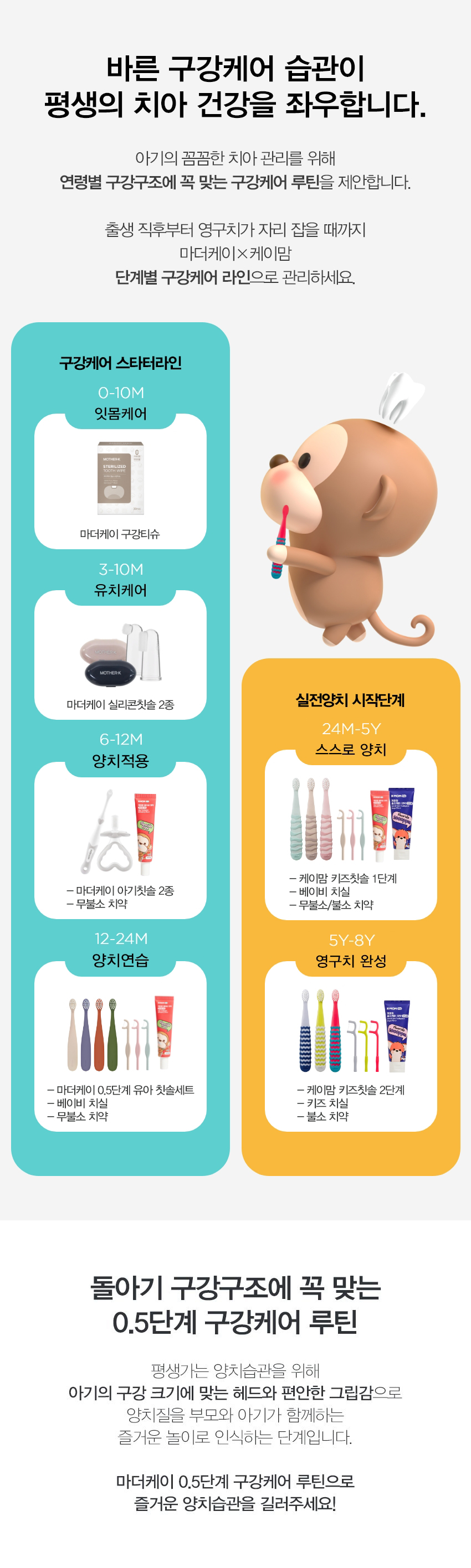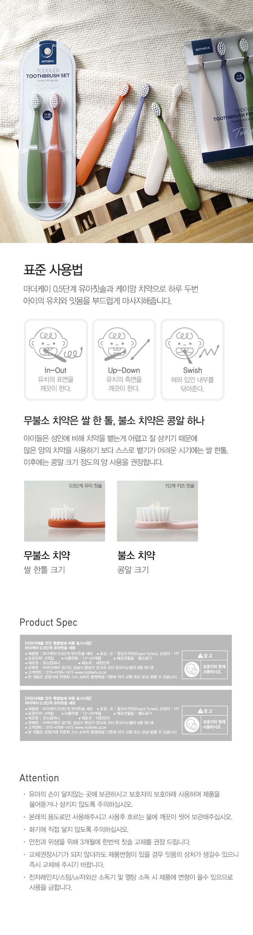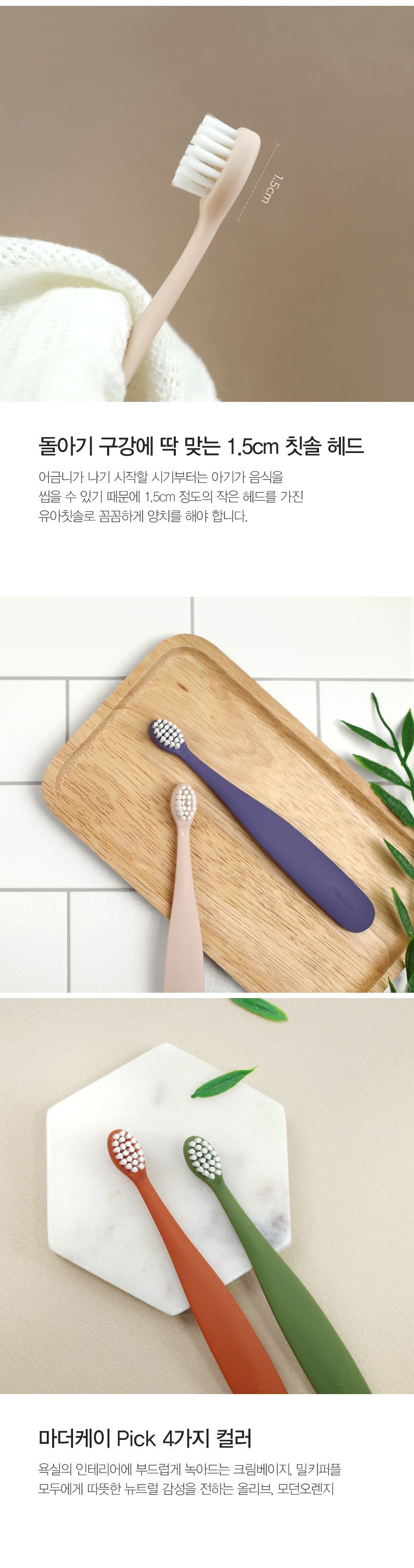 [마더케이] 유아 칫솔 2종 세트 (크림베이지&밀키퍼플)