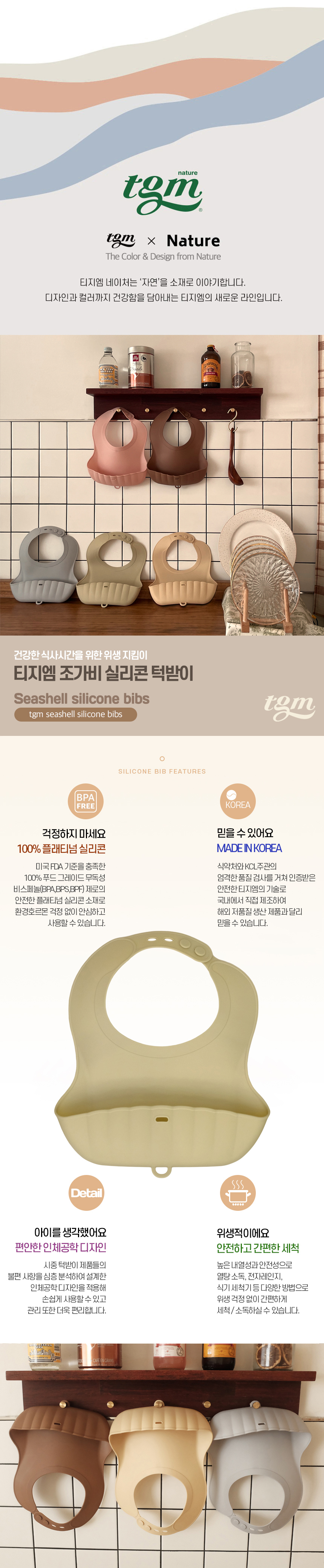 [TGM] 조가비 실리콘 이유식 턱받이(베이지)