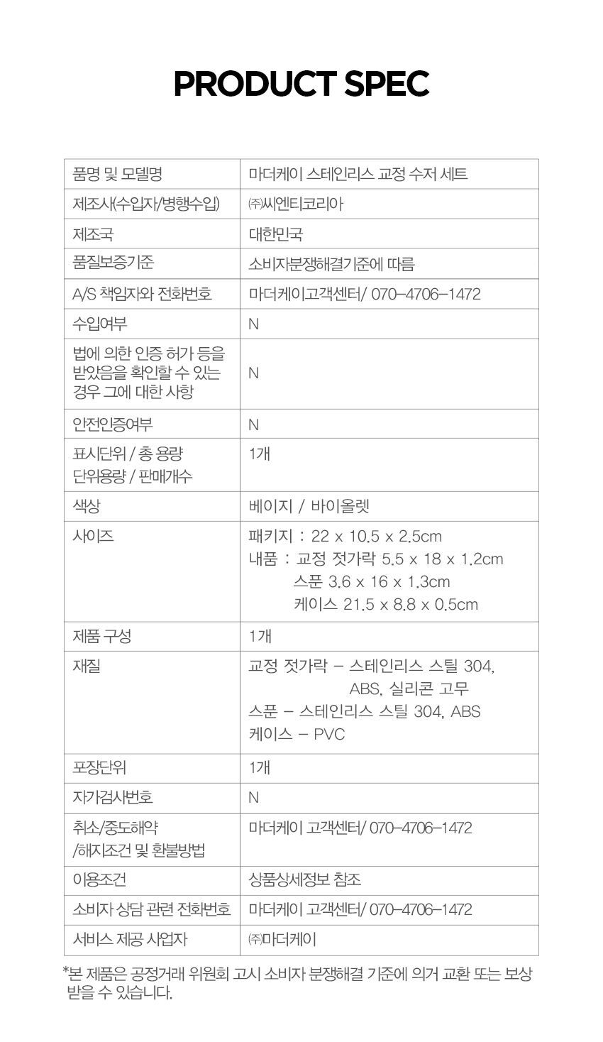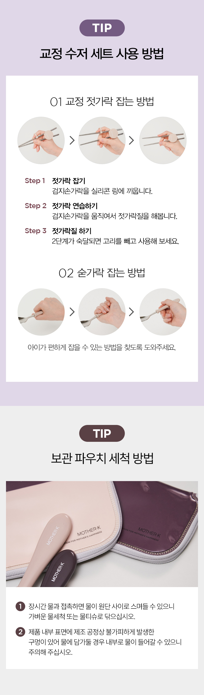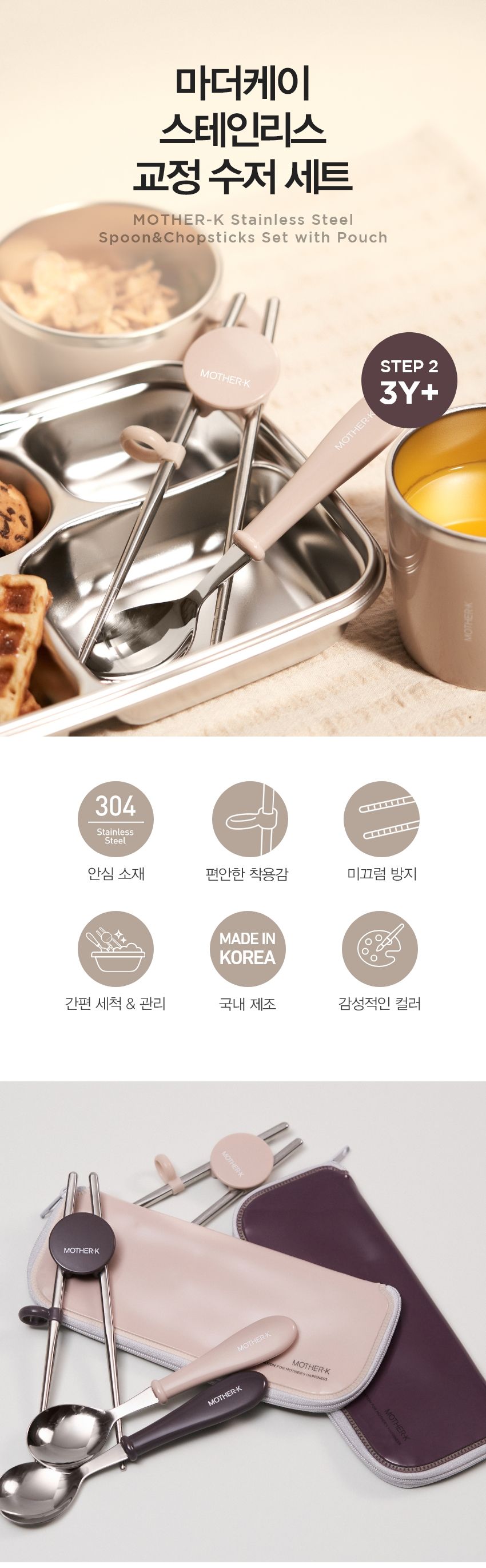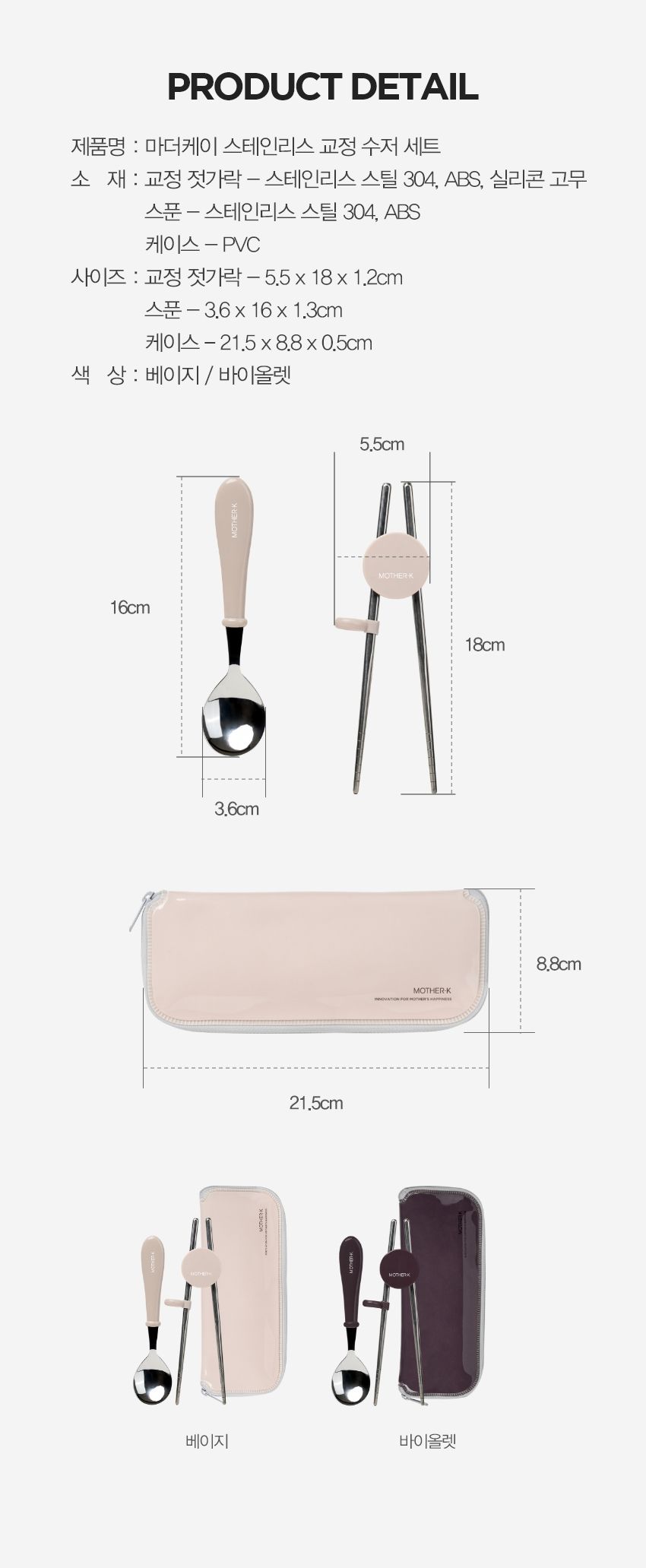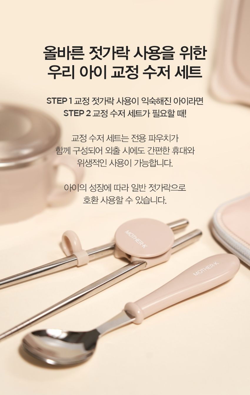 [마더케이] 스테인리스 교정 수저 세트 (베이지)