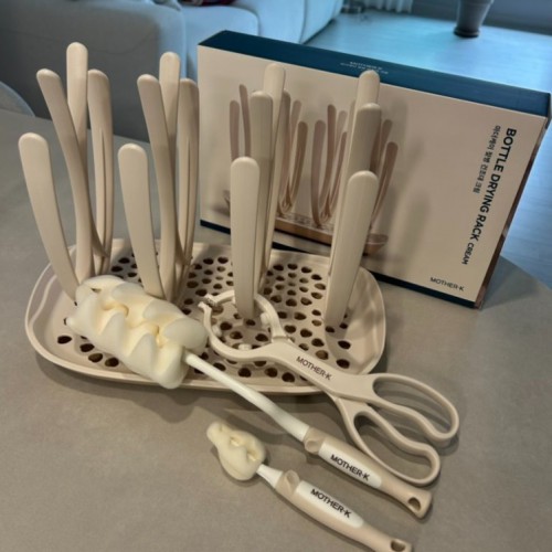 [마더케이] 신생아 세척용품 세트 (젖병건조대+젖병브러쉬+젖꼭지브러쉬+젖병집게) 베이지